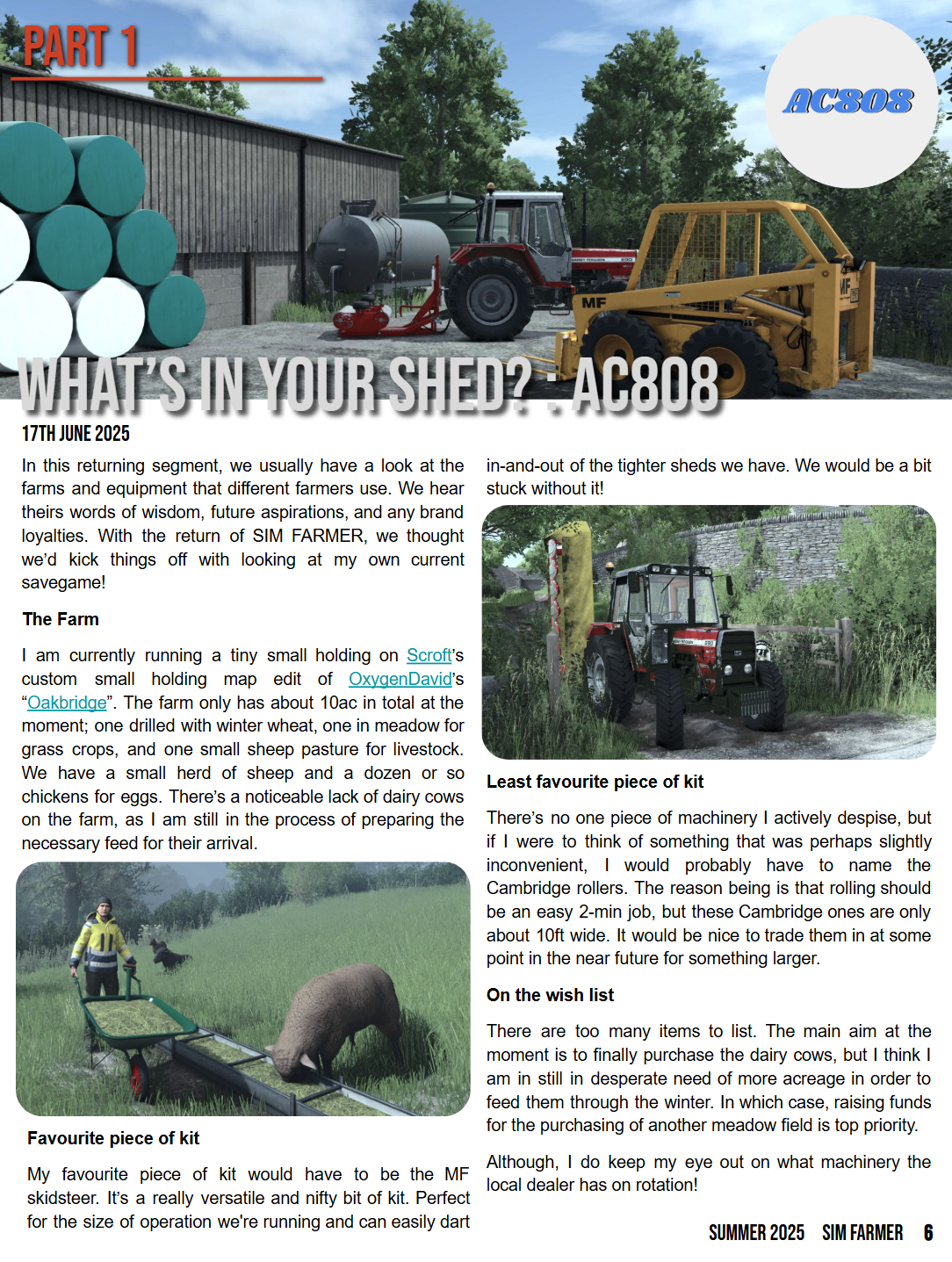 You may notice in the magazine some prompts to comment here if you are interested in featuring in any future content I create. Please feel free to do so here, and you never know I may come to you for future SIM FARMER content.